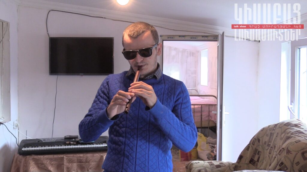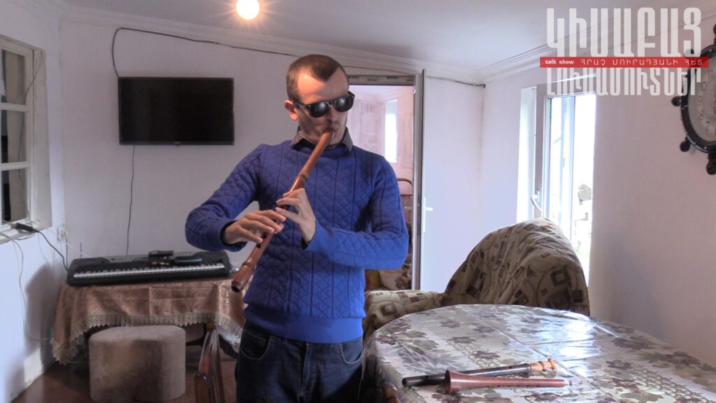 30-year-old Hakob Babayan’s eyesight problems do not prevent him from doing his favorite job. A young man from Artsakh, who had lost his eyesight at the age of six, has been playing the pipe for several years. He has always loved music since his childhood, but he had never imagined that would play. Hakob aimed to become a good piper. At first, the problems seemed unsolvable to Hakob; then he found some strength of will and he did his best in order not to be broken down by any difficulties. Today Hakob already plays dozens of musical instruments.