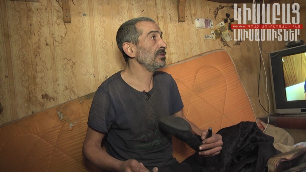 For several years now, Rudik’s family members, his mother, his wife, and his children have resigned from him and he has to live in a shoe store, where primary conditions are lacking. He earns his living by repairing shoes but he doesn’t always have a job and able to eat something every day.